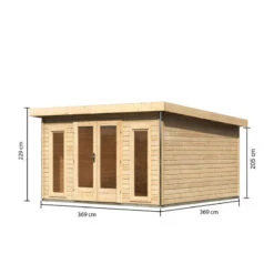 Abri Toit Plat 13,60m² Bois Massif 40mm Northeim 5 Avec Appentis 330cm Et Paroi Arrière – Karibu