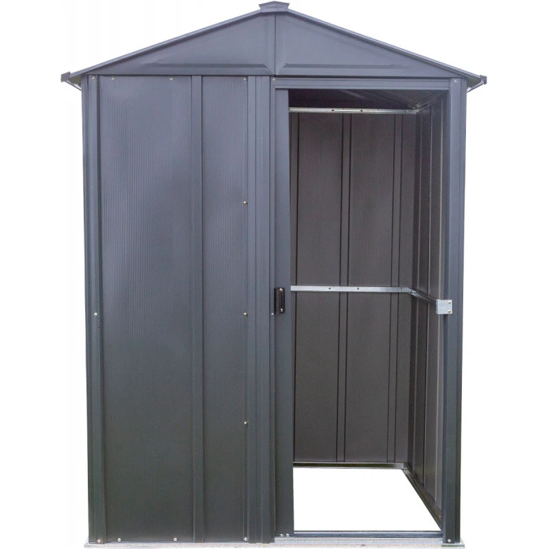Ce petit abri de jardin Spacemaker à la tonalité gris anthracite trouvera discrètement sa place dans votre aménagement extérieur, avec des dimensions en façade de 151cm pour une profondeur de 122cm, et une hauteur faîtière de 198cm. Grâce à ces dimensions compactes, il pourra être placé dans un espace restreint ou dans un recoin peu utilisé de votre terrasse. Avec une surface au sol de 1,5m², il accueillera de façon idéale votre outillage de jardin, vos conteneurs à poubelles ou pourra servir à abriter l’installation de filtration de votre piscine.