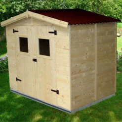 L’abri de jardin 5,04m² est réalisé en bois massif issu des forêts gérées d’une manière responsable. Les panneaux de 16mm s’assemblent très rapidement avec rainure et languette. Livré brut, le bois demande un traitement avant le montage ce qui renforcera sa résistance aux intempéries et au pourrissement.
