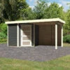 L’avis du spécialiste sur l’abri de jardin en bois massif gris terre 4,62m² Schwandorf 3 avec appentis 280cm et paroi arrière – Karibu :