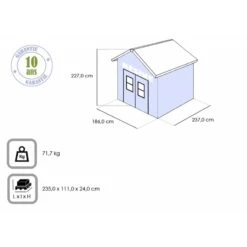 • Dimensions extérieures « hors tout » (y compris les débords de toit) : 186x237cm