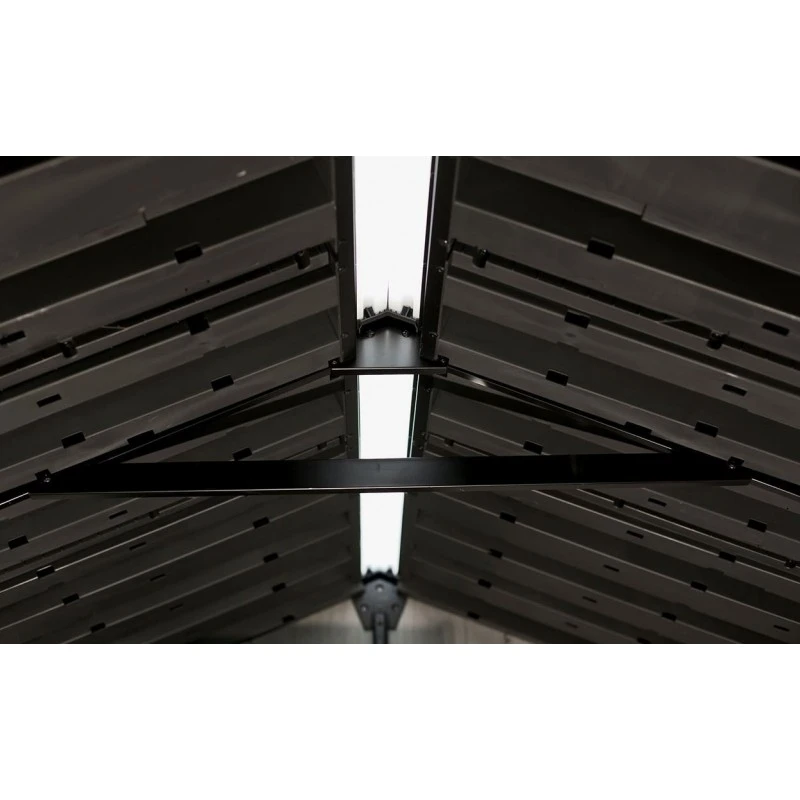Ultra lumineux, l’abri de jardin Oakland Brossium 1175 intègre un skylight dans le faîtage de son toit double pente et 2 fenêtres fixes sont positionnées sur la façade avant, pour que la lumière pénètre au maximum.