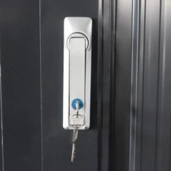 La particularité de cet abri est son accès facile au moyen d’une double porte constituant sa façade. La poignée d’ouverture est munie d’une serrure à cylindre de qualité avec un jeu de 2 clés, pour une utilisation partagée de l’abri. La poignée est conçue pour une exposition prolongée aux éléments. Vous pouvez avoir accès à un seul battant de la double porte pour une utilisation pratique.