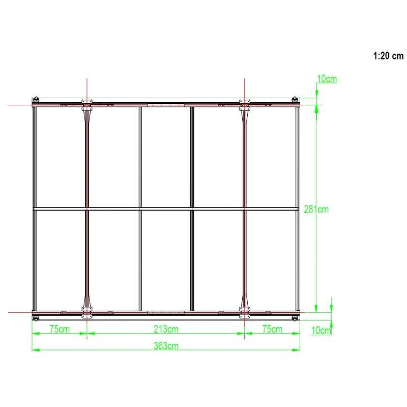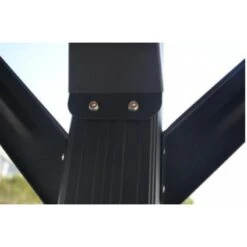 Ses poteaux de sections 10x4cm sont au nombre de 4 et supportent une couverture en polycarbonate alvĂ©olaire de 6mm grise. L’aluminium de 1,2 Ă 1,5mm d’Ă©paisseur selon les profilĂ©s est laquĂ© anthracite pour qu’il s’intègre parfaitement dans votre environnement extĂ©rieur.