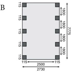 Afin de répondre complètement à vos besoins d’un abri sûr et fiable, le carport en bois autoclave 26,9m² Karibu est équipé d’un toit en acier qui peut supporter une charge de neige de 125kg/m². Le passage de 250cm vous permettra de manœuvrer facilement votre voiture pour la garer au sec.