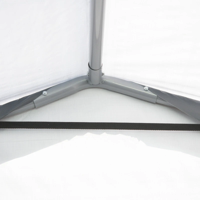 Ce garage démontable est un abri multi-fonctionnel qui conviendra également pour préserver votre outillage de jardin, deux-roues, remorques des intempéries, de la poussière ou de la sève des arbres. L’abri se compose d’une structure robuste en acier thermolaqué recouverte d’une bâche ultra-résistante en polyéthylène triple épaisseur. Les tubes de la structure ont une section de 35mm, et la bâche d’une densité de 160g/m² est parfaitement étanche. Les jonctions sont réalisées par thermosoudure, et la toile a subi un traitement unique qui la protège du rayonnement UV.