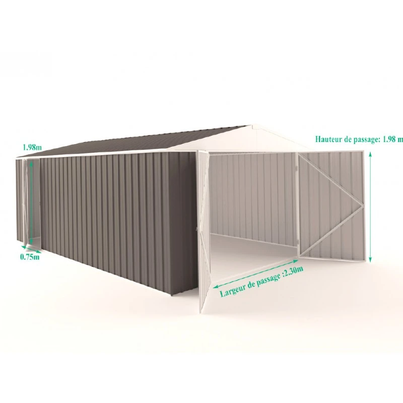 La conception de ce garage en métal est exceptionnelle. Les parois sont épaisses de 0,35mm, soit 40% de plus que la majorité des garages métalliques sur le marché. De plus, l’acier utilisé est d’une très grande qualité. Il s’agit d’un acier galvanisé Zincalume, et d’une peinture Colorbond 5 couches, ce qui le rend très résistant aux chocs et qui permet de le garantir 30 ans anti-corrosion.