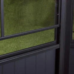 Le pavillon Charleston adossé sera un complément exceptionnel pour l’aménagement de votre terrasse. Avec une largeur de 298,5cm pour une longueur 502cm, sa hauteur faîtière de 244,5cm développe un volume confortable et ample, propice à l’installation d’un salon de jardin ou d’un jacuzzi. Il possède une structure robuste en aluminium gris thermolaqué qui ne craint pas la corrosion et qui peut soutenir une charge de neige exceptionnelle de 150kg/m². Le pavillon est composé de 11 panneaux, dont 9 fenêtres à guillotine et 2 portes coulissantes de 102cm de passage pour une hauteur de 201cm. Montage des portes possible sur le côté droit, gauche et/ou avant.