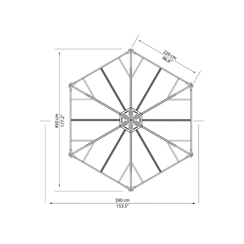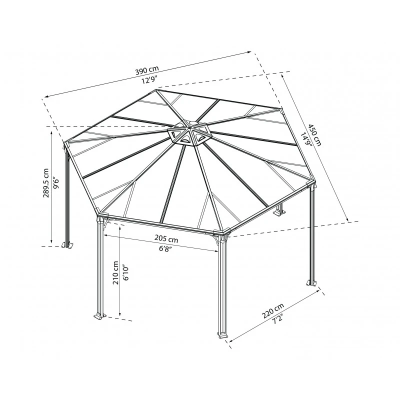 Cette magnifique pergola hexagonale Monaco™ est un des plus grand modèles de la prestigieuse marque Canopia by Palram.