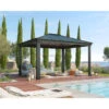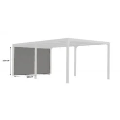 Cette pergola Thermauvent de 10,67m² dispose d’une paroi équipée de lames orientables mobiles à la façon d’un store vénitien. Selon l’inclinaison des lames, elle peut être entièrement obstruée pour vous protéger du soleil, du vent ou des regards.